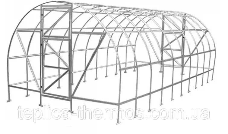 Каркас теплиці надійно захищений від механічних пошкоджень та іржі на стиках, на відміну від фарбованих каркасів.